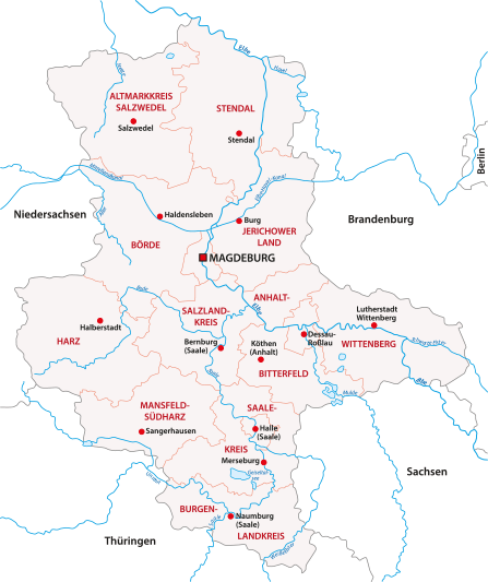 Magdeburg, Bernburg (Saale), Halberstadt, Halle (Saale), Lutherstadt Wittenberg, Quedlinburg, Stendal, Naumburg, Wernigerode, Merseburg, Bitterfeld-Wolfen, Schönebeck (Elbe), Freyburg, Hansestadt Gardelegen